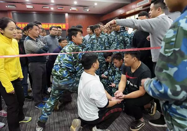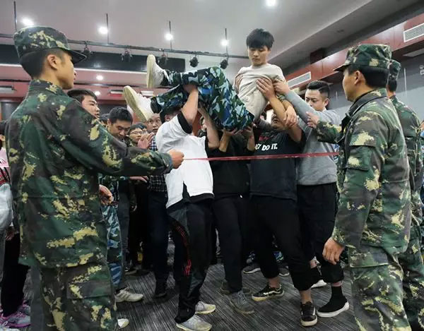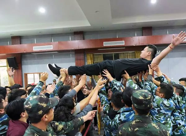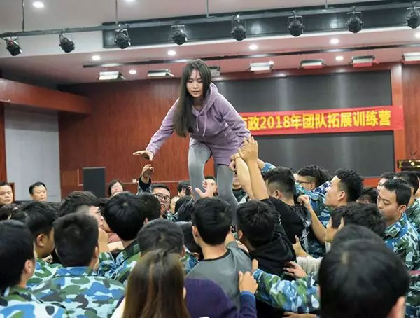 我们舍己为人、帮助队友,用自己的双手托起队友的脚步,用自己的身体保护队友的平安,确保每一位队员安全顺利通过红线。