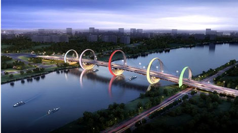 红壁岩大桥设计理念——玉璧连环(全桥首座钢圆环主塔斜拉桥)