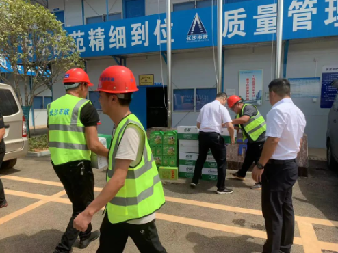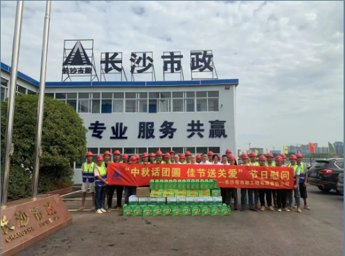 公司总经理石含,副总经理丁红军为靳江河西岸(含东山湾路)综合整治工程项目、青竹湖统征储备地块配套路网工程项目 、秋江西路等六条路工程项目、长沙机场中轴大道工程项目的一线员工发放了月饼、水果、矿泉水等慰问品,带去公司对他们的问候和嘱托,对大家的敬业奉献精神表示高度赞扬,并叮嘱大家一定要保重身体,注意安全,圆满完成施工任务。